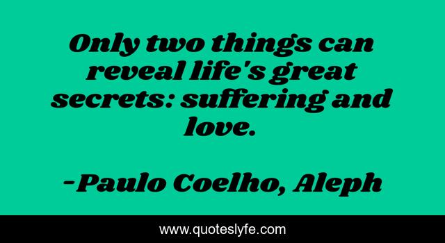 This page presents the quote "Only two things can reveal life's great secrets: suffering and love.". Author of this quote is Paulo Coelho, Aleph. This quote is about enthusiasm, inspirational,.