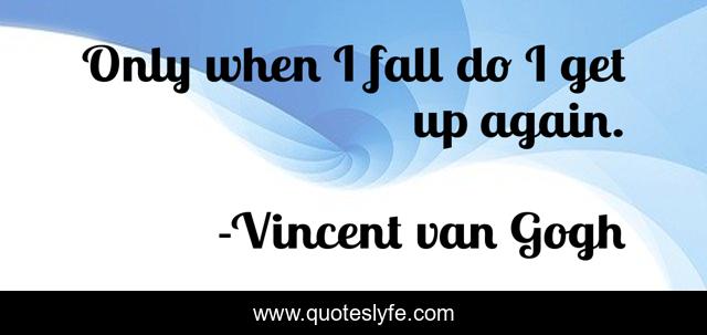 This page presents the quote "Only when I fall do I get up again.". Author of this quote is Vincent van Gogh. This quote is about enthusiasm, inspirational,.