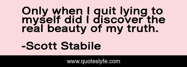 This page presents the quote "Only when I quit lying to myself did I discover the real beauty of my truth.". Author of this quote is Scott Stabile. This quote is about beauty, life, love, lying, affection,.