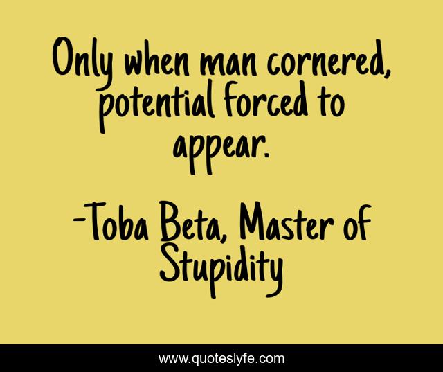 "Toba Beta, Master of Stupidity Quotes." Quoteslyfe.com, 2025. Fri. 05 Dec. 2025. <https://www.quoteslyfe.com/quote/Only-when-man-cornered-potential-forced-to-164778>.