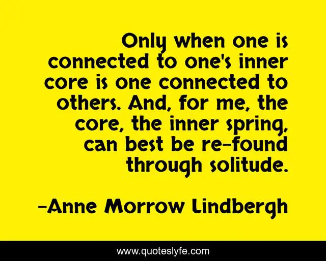 This page presents the quote "Only when one is connected to one's inner core is one connected to others. And, for me, the core, the inner spring, can best be re-found through solitude.". Author of this quote is Anne Morrow Lindbergh. This quote is about enthusiasm, writing-life, inspirational,.