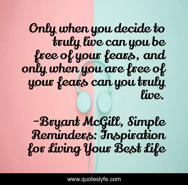 This page presents the quote "Only when you decide to truly live can you be free of your fears, and only when you are free of your fears can you truly live.". Author of this quote is Bryant McGill, Simple Reminders: Inspiration for Living Your Best Life. This quote is about decisions, life, fears, freedom,.
