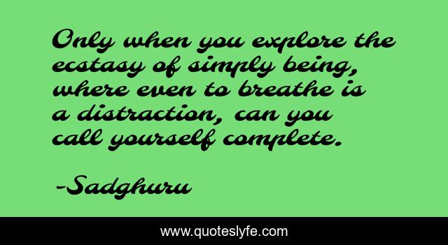 This page presents the quote "Only when you explore the ecstasy of simply being, where even to breathe is a distraction, can you call yourself complete.". Author of this quote is Sadghuru. This quote is about being, breathe, breathing,.