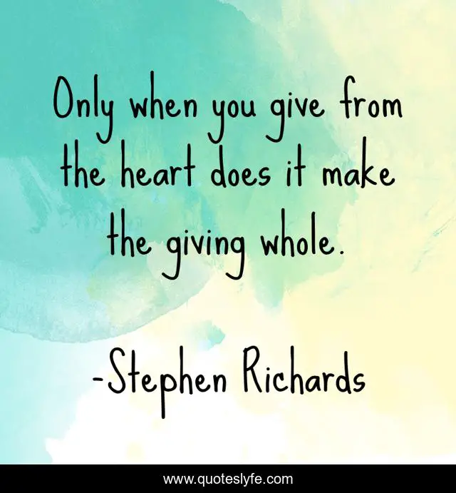 "Stephen Richards Quotes." Quoteslyfe.com, 2025. Sat. 06 Dec. 2025. <https://www.quoteslyfe.com/quote/Only-when-you-give-from-the-heart-224299>.