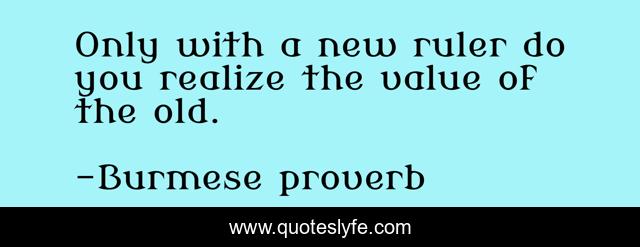 This page presents the quote "Only with a new ruler do you realize the value of the old.". Author of this quote is Burmese proverb. .
