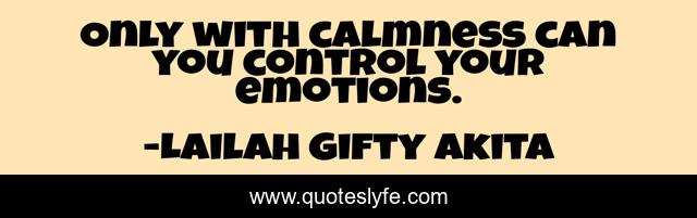 This page presents the quote "Only with calmness can you control your emotions.". Author of this quote is Lailah Gifty Akita. This quote is about control, advice, emotions, thought-provoking, self-control, calmness, angry,.