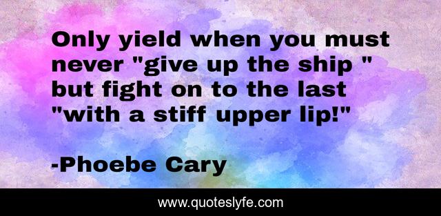 This page presents the quote "Only yield when you must never "give up the ship " but fight on to the last "with a stiff upper lip!"". Author of this quote is Phoebe Cary. This quote is about , pressure, diamonds,.