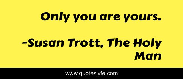 This page presents the quote "Only you are yours.". Author of this quote is Susan Trott, The Holy Man. This quote is about spirituality, philosophical, susan-trott, the-holy-man,.