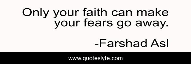 This page presents the quote "Only your faith can make your fears go away.". Author of this quote is Farshad Asl. This quote is about faith, fears,.