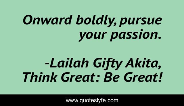 "Lailah Gifty Akita, Think Great: Be Great! Quotes." Quoteslyfe.com, 2025. Mon. 08 Dec. 2025. <https://www.quoteslyfe.com/quote/Onward-boldly-pursue-your-passion-92981>.