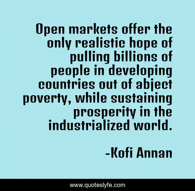 "Kofi Annan Quotes." Quoteslyfe.com, 2025. Mon. 08 Dec. 2025. <https://www.quoteslyfe.com/quote/Open-markets-offer-the-only-realistic-hope-304253>.