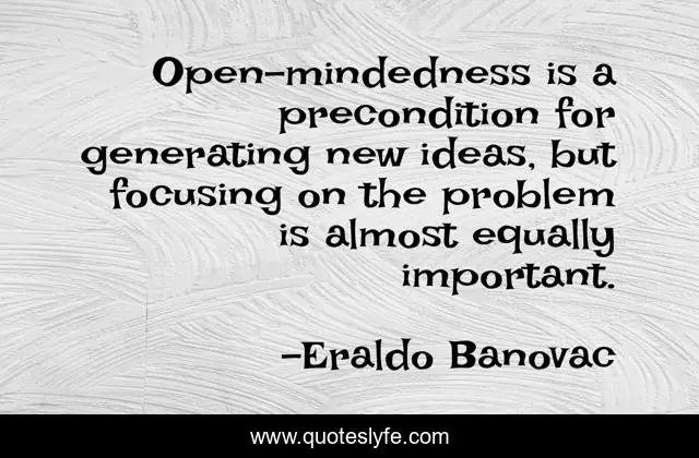 This page presents the quote "Open-mindedness is a precondition for generating new ideas, but focusing on the problem is almost equally important.". Author of this quote is Eraldo Banovac. This quote is about open-mind, focus, ideas, open-mindedness, focusing, problem-solving,.