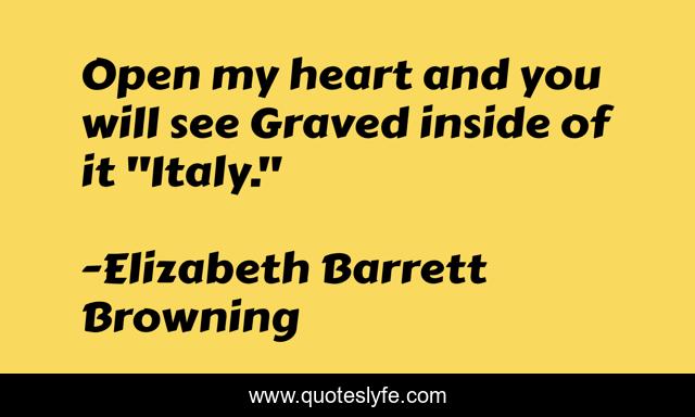 This page presents the quote "Open my heart and you will see Graved inside of it "Italy."". Author of this quote is Elizabeth Barrett Browning. .