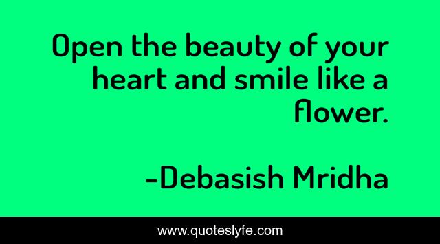 This page presents the quote "Open the beauty of your heart and smile like a flower.". Author of this quote is Debasish Mridha. This quote is about heart, beauty, philosophy, debasish-mridha, quotes, inspirational, smile, enthusiasm, debasish-mridha-m-d,.