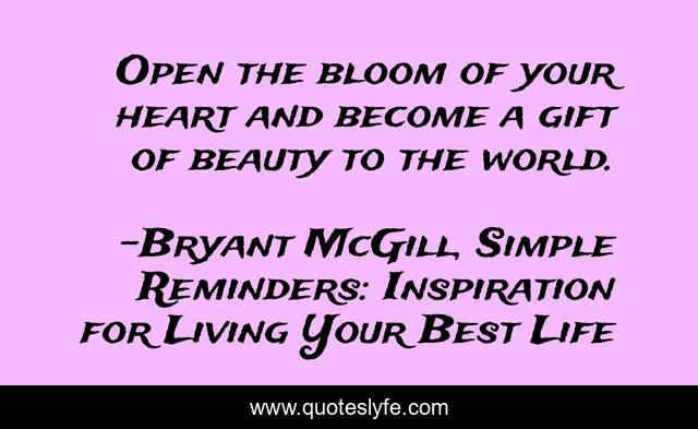 "Bryant McGill, Simple Reminders: Inspiration for Living Your Best Life Quotes." Quoteslyfe.com, 2025. Sat. 06 Dec. 2025. <https://www.quoteslyfe.com/quote/Open-the-bloom-of-your-heart-and-190148>.
