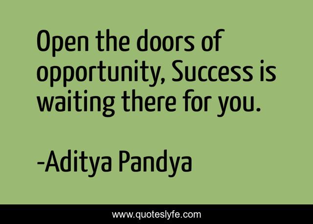 This page presents the quote "Open the doors of opportunity, Success is waiting there for you.". Author of this quote is Aditya Pandya. This quote is about opportunity, success,.