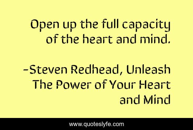 This page presents the quote "Open up the full capacity of the heart and mind.". Author of this quote is Steven Redhead, Unleash The Power of Your Heart and Mind. This quote is about heart, mind,.