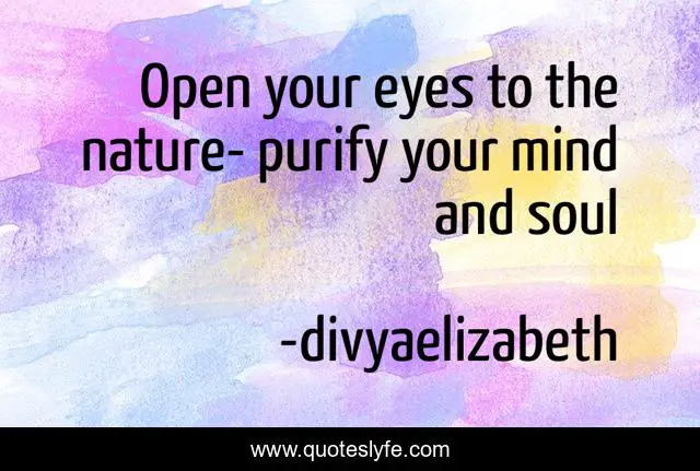This page presents the quote "Open your eyes to the nature- purify your mind and soul". Author of this quote is divyaelizabeth. .