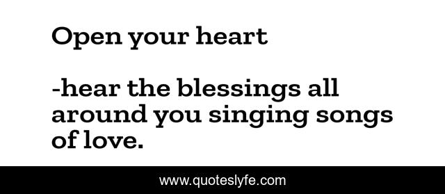 "hear the blessings all around you singing songs of love. Quotes." Quoteslyfe.com, 2025. Sat. 06 Dec. 2025. <https://www.quoteslyfe.com/quote/Open-your-heart-240872>.