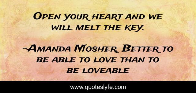 "Amanda Mosher, Better to be able to love than to be loveable Quotes." Quoteslyfe.com, 2025. Mon. 08 Dec. 2025. <https://www.quoteslyfe.com/quote/Open-your-heart-and-we-will-melt-81487>.