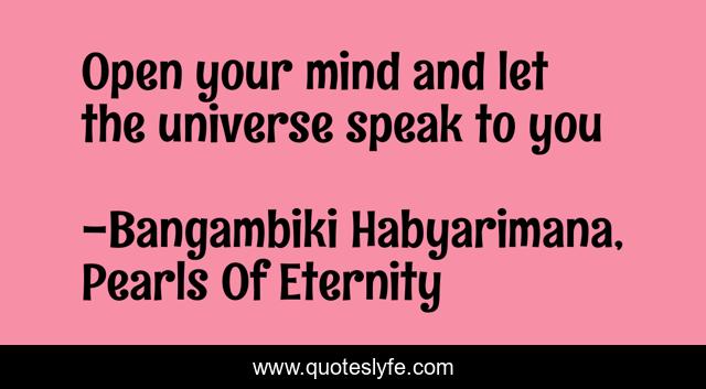 "Bangambiki Habyarimana, Pearls Of Eternity Quotes." Quoteslyfe.com, 2025. Sat. 06 Dec. 2025. <https://www.quoteslyfe.com/quote/Open-your-mind-and-let-the-universe-169722>.