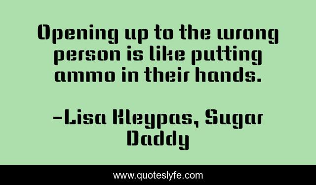 This page presents the quote "Opening up to the wrong person is like putting ammo in their hands.". Author of this quote is Lisa Kleypas, Sugar Daddy. This quote is about advice, life,.