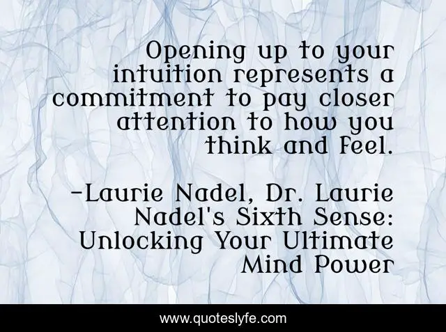 "Laurie Nadel, Dr. Laurie Nadel's Sixth Sense: Unlocking Your Ultimate Mind Power Quotes." Quoteslyfe.com, 2025. Sat. 06 Dec. 2025. <https://www.quoteslyfe.com/quote/Opening-up-to-your-intuition-represents-a-15446>.