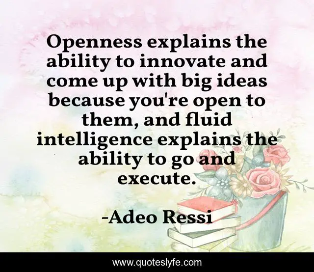 This page presents the quote "Openness explains the ability to innovate and come up with big ideas because you're open to them, and fluid intelligence explains the ability to go and execute.". Author of this quote is Adeo Ressi. This quote is about ideas, ability,.