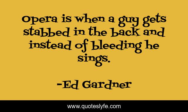This page presents the quote "Opera is when a guy gets stabbed in the back and instead of bleeding he sings.". Author of this quote is Ed Gardner. .