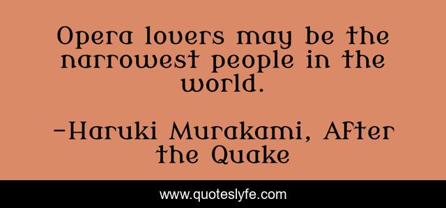 This page presents the quote "Opera lovers may be the narrowest people in the world.". Author of this quote is Haruki Murakami, After the Quake. This quote is about opera, music,.