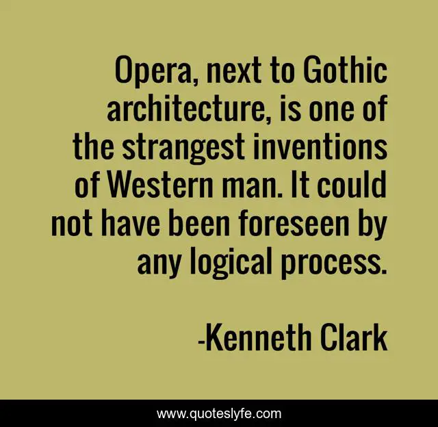 This page presents the quote "Opera, next to Gothic architecture, is one of the strangest inventions of Western man. It could not have been foreseen by any logical process.". Author of this quote is Kenneth Clark. This quote is about process, opera, man,.