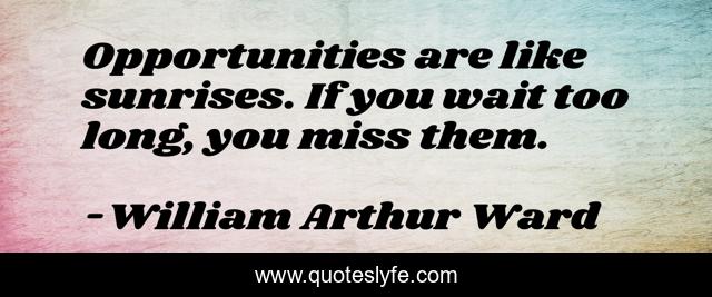 "William Arthur Ward Quotes." Quoteslyfe.com, 2025. Sun. 07 Dec. 2025. <https://www.quoteslyfe.com/quote/Opportunities-are-like-sunrises-If-you-wait-297701>.