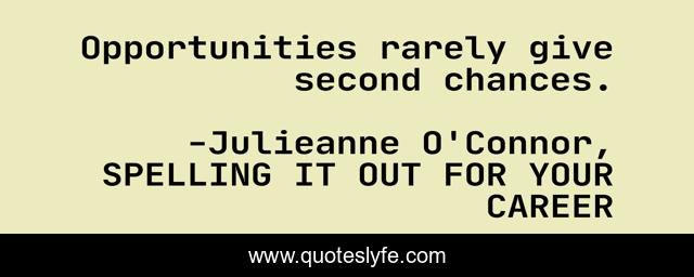 "Julieanne O'Connor, SPELLING IT OUT FOR YOUR CAREER Quotes." Quoteslyfe.com, 2025. Mon. 08 Dec. 2025. <https://www.quoteslyfe.com/quote/Opportunities-rarely-give-second-chances-49752>.
