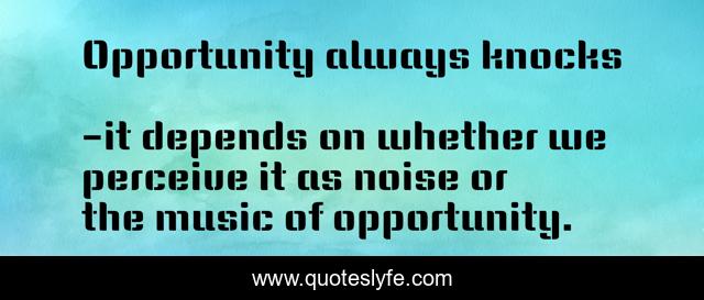 "it depends on whether we perceive it as noise or the music of opportunity. Quotes." Quoteslyfe.com, 2025. Mon. 08 Dec. 2025. <https://www.quoteslyfe.com/quote/Opportunity-always-knocks-83344>.