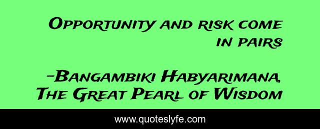 "Bangambiki Habyarimana, The Great Pearl of Wisdom Quotes." Quoteslyfe.com, 2025. Mon. 08 Dec. 2025. <https://www.quoteslyfe.com/quote/Opportunity-and-risk-come-in-pairs-83998>.