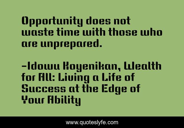 "Idowu Koyenikan, Wealth for All: Living a Life of Success at the Edge of Your Ability Quotes." Quoteslyfe.com, 2025. Sat. 06 Dec. 2025. <https://www.quoteslyfe.com/quote/Opportunity-does-not-waste-time-with-those-189153>.