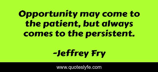 "Jeffrey Fry Quotes." Quoteslyfe.com, 2025. Mon. 08 Dec. 2025. <https://www.quoteslyfe.com/quote/Opportunity-may-come-to-the-patient-but-189095>.