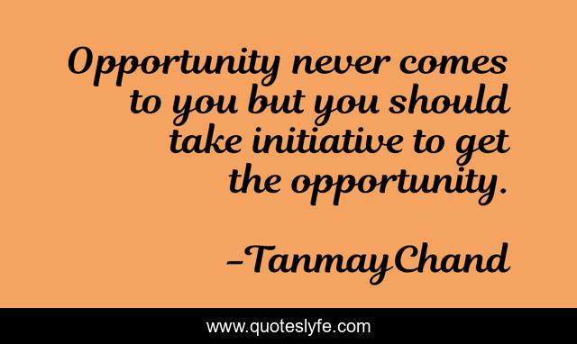 This page presents the quote "Opportunity never comes to you but you should take initiative to get the opportunity.". Author of this quote is TanmayChand. .