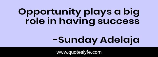This page presents the quote "Opportunity plays a big role in having success". Author of this quote is Sunday Adelaja. This quote is about prosperity, plays, wealth, success, big, riches, labor, role, money,.