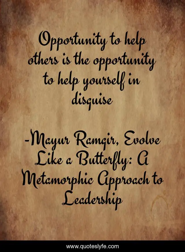 "Mayur Ramgir, Evolve Like a Butterfly: A Metamorphic Approach to Leadership Quotes." Quoteslyfe.com, 2025. Fri. 05 Dec. 2025. <https://www.quoteslyfe.com/quote/Opportunity-to-help-others-is-the-opportunity-189081>.