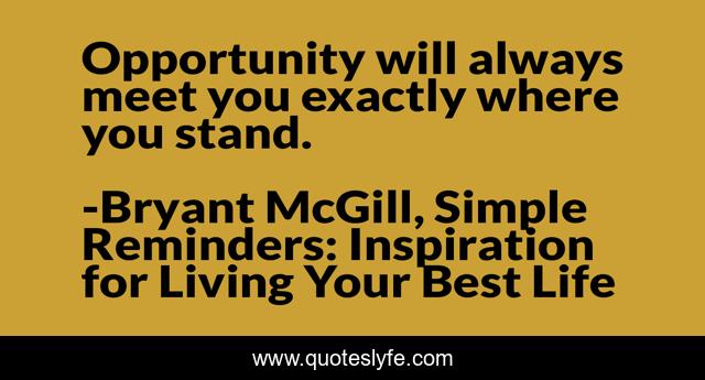 "Bryant McGill, Simple Reminders: Inspiration for Living Your Best Life Quotes." Quoteslyfe.com, 2025. Fri. 05 Dec. 2025. <https://www.quoteslyfe.com/quote/Opportunity-will-always-meet-you-exactly-where-212471>.