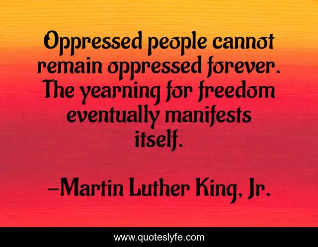 "Martin Luther King, Jr. Quotes." Quoteslyfe.com, 2025. Fri. 05 Dec. 2025. <https://www.quoteslyfe.com/quote/Oppressed-people-cannot-remain-oppressed-forever-The-330034>.