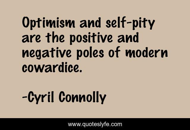 This page presents the quote "Optimism and self-pity are the positive and negative poles of modern cowardice.". Author of this quote is Cyril Connolly. .