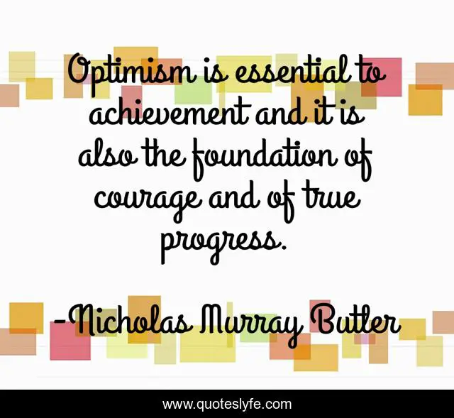 This page presents the quote "Optimism is essential to achievement and it is also the foundation of courage and of true progress.". Author of this quote is Nicholas Murray Butler. .