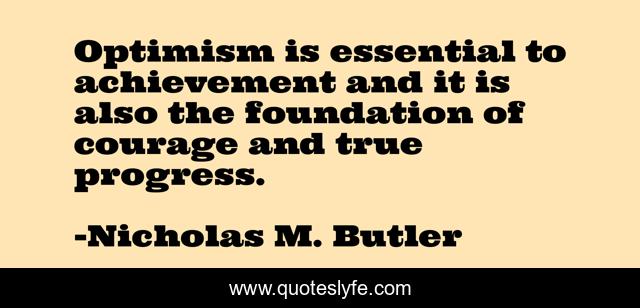 This page presents the quote "Optimism is essential to achievement and it is also the foundation of courage and true progress.". Author of this quote is Nicholas M. Butler. This quote is about progress, achievement,.