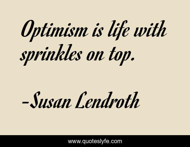 "Susan Lendroth Quotes." Quoteslyfe.com, 2025. Fri. 05 Dec. 2025. <https://www.quoteslyfe.com/quote/Optimism-is-life-with-sprinkles-on-top-181007>.
