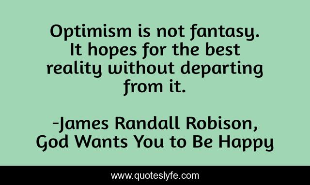 This page presents the quote "Optimism is not fantasy. It hopes for the best reality without departing from it.". Author of this quote is James Randall Robison, God Wants You to Be Happy. This quote is about faith, hope, optimism,.