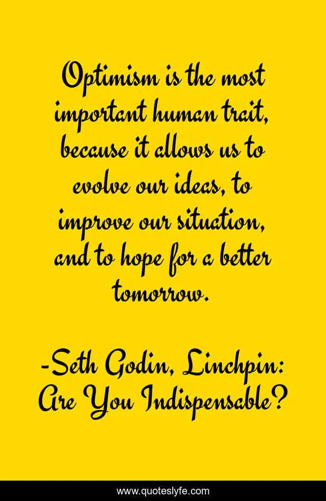 "Seth Godin, Linchpin: Are You Indispensable? Quotes." Quoteslyfe.com, 2025. Sun. 07 Dec. 2025. <https://www.quoteslyfe.com/quote/Optimism-is-the-most-important-human-trait-181054>.