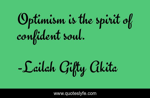 This page presents the quote "Optimism is the spirit of confident soul.". Author of this quote is Lailah Gifty Akita. This quote is about faith, motivation, self-confident, hope, optimism,.