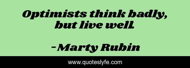 This page presents the quote "Optimists think badly, but live well.". Author of this quote is Marty Rubin. This quote is about living-well, optimism,.